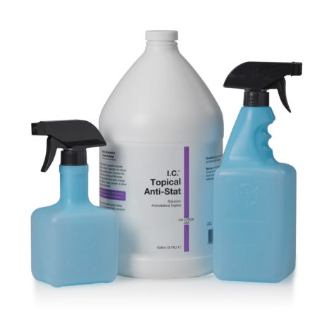 Controls static buildup on surfaces and tools. Use after cleaning to maintain ESD protection during humidity changes.